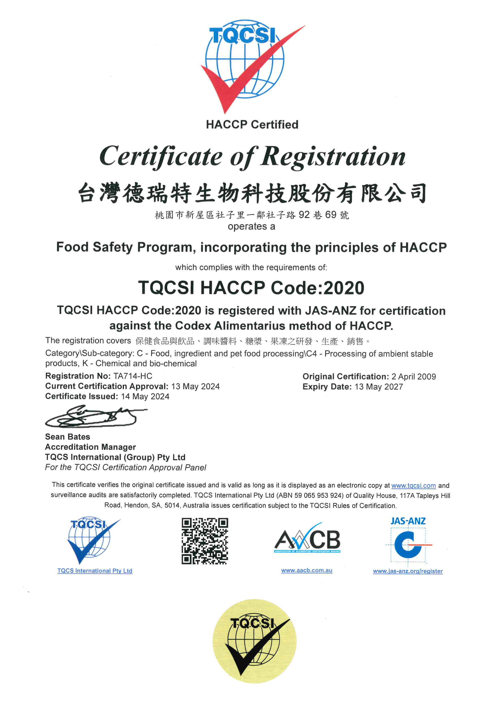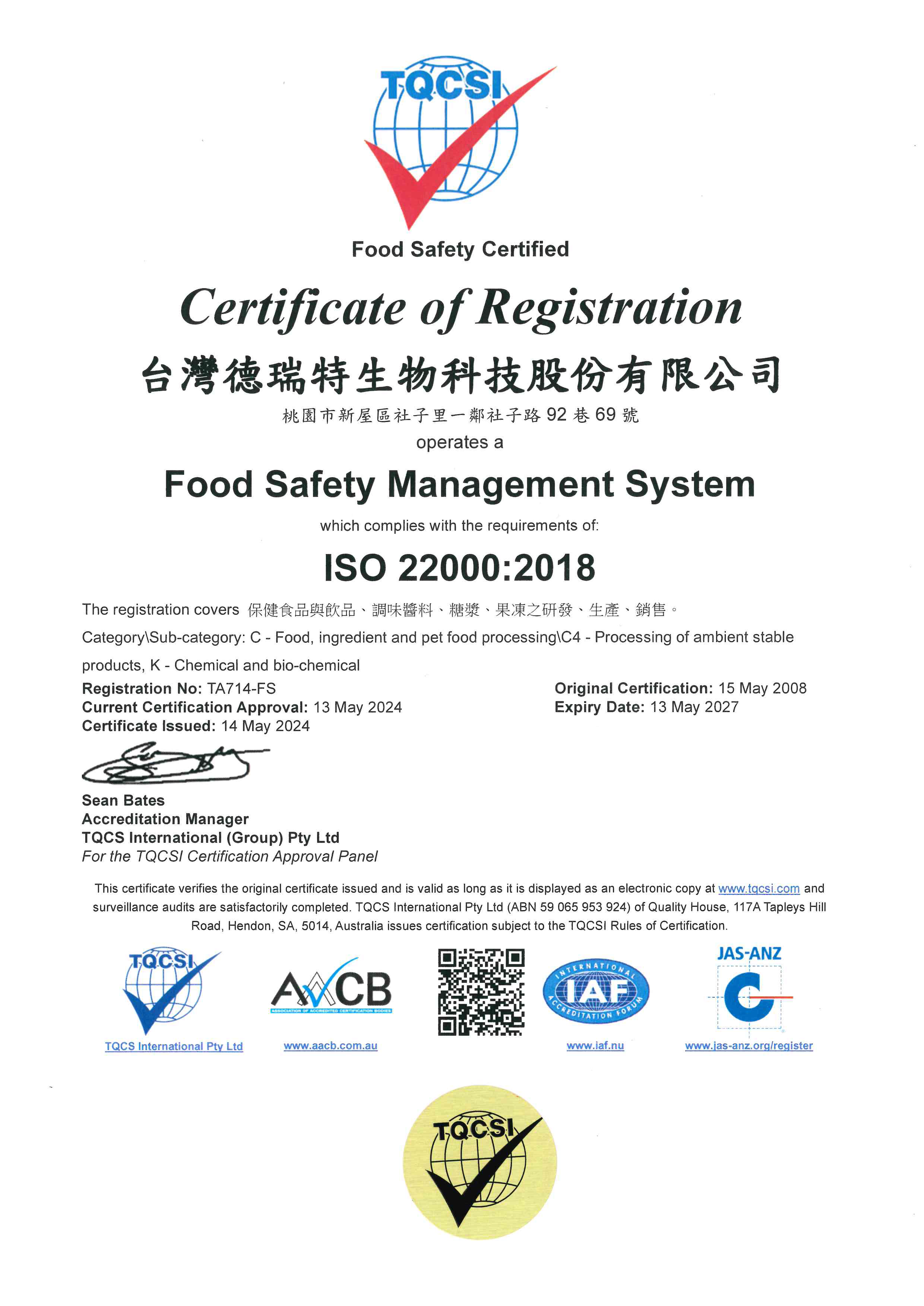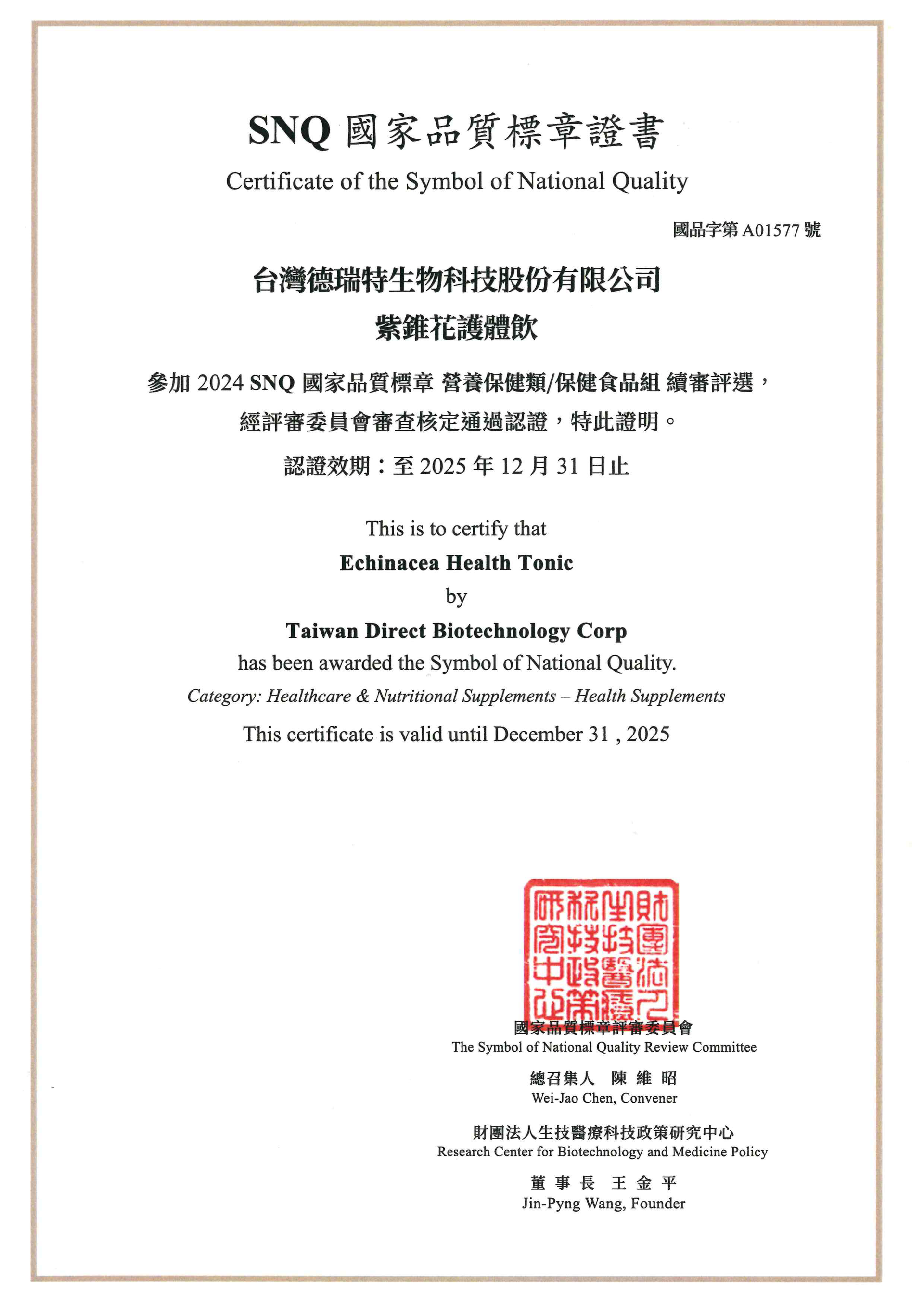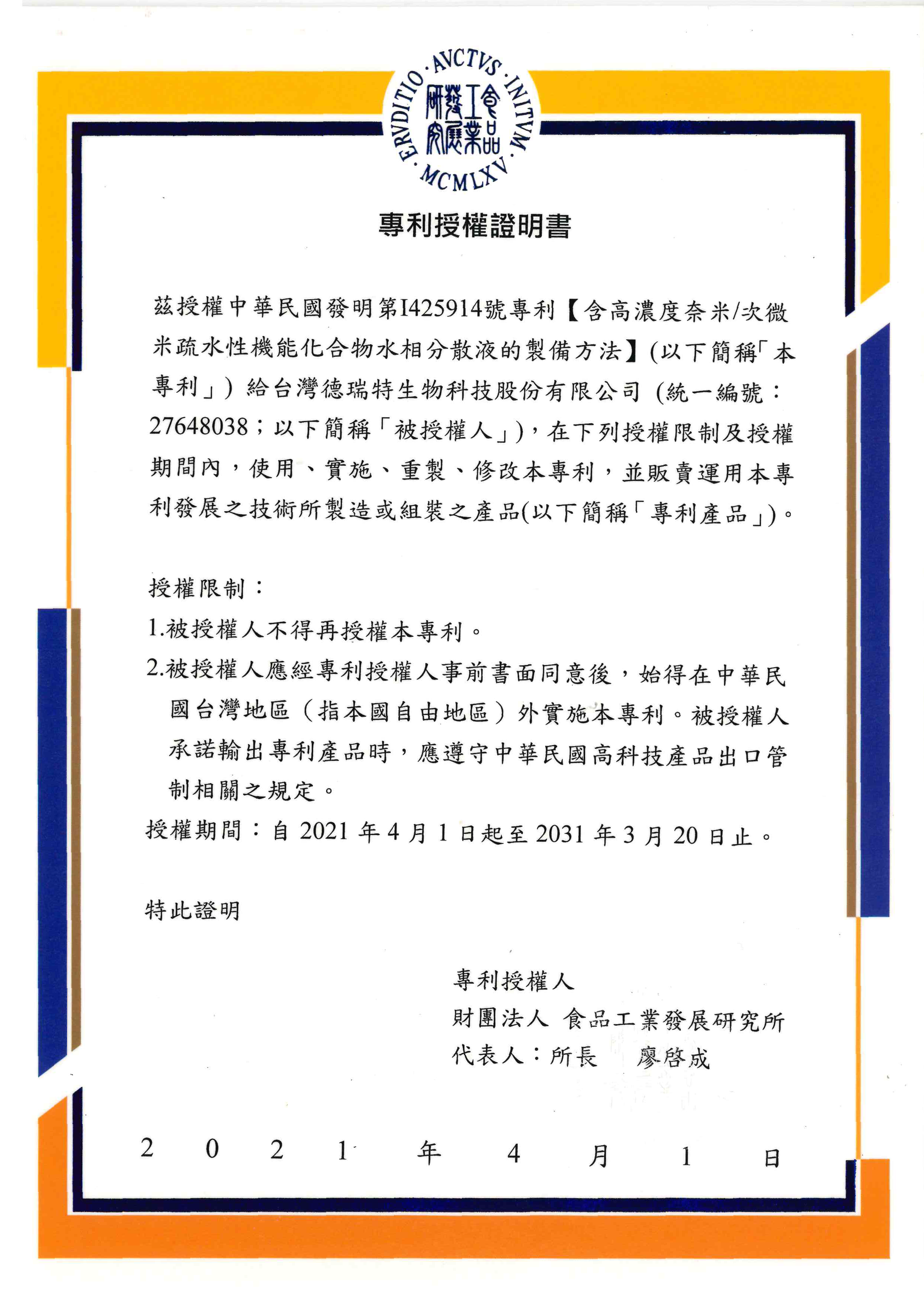 我们坚持以高品质为核心,从原料选择到制程控管,皆以最严谨的标准执行,因而荣获多项国内外认证肯定。我们持续深耕保健成分的研发,已有多项创新成分取得专利证书,并成功导入产品设计中,不仅强化产品效能,也大幅提升市场竞争力。未来,德瑞特将持续以专业研发为基础,带来更多优质且值得信赖的产品。